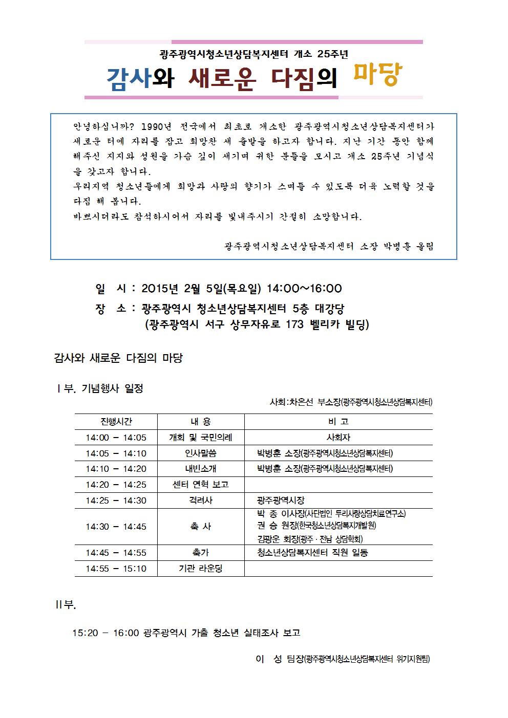 ±¤ÁÖ±¤¿ª½Ãû¼Ò³â»ó´ãº¹Áö¼¾ÅÍ °³¼Ò 25ÁÖ³â ¹× ÀÌÀü ±â³ä½Ä ¾È³»