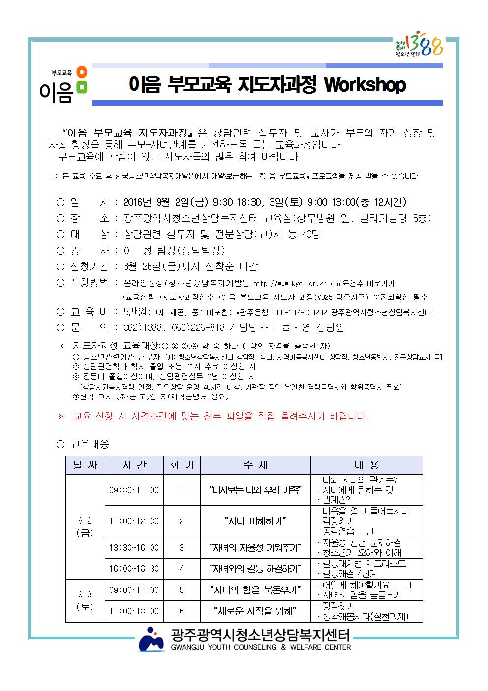 ÀÌÀ½ ºÎ¸ð±³À° ÁöµµÀÚ°úÁ¤ÀÌ ½Åû Á¢¼öÁßÀÔ´Ï´Ù.