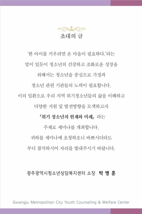 ±¤ÁÖ±¤¿ª½Ã û¼Ò³â À§±â½ÇÅÂÁ¶»ç ¼¼¹Ì³ª ¡ºÀ§±â û¼Ò³âÀÇ ÇöÀç¿Í ¹Ì·¡¡»