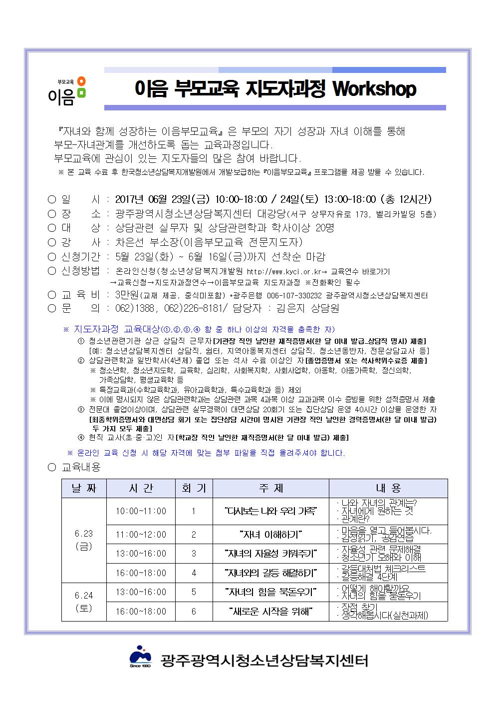 6¿ù ÀÌÀ½ºÎ¸ð±³À° ÁöµµÀÚ°úÁ¤ Workshop