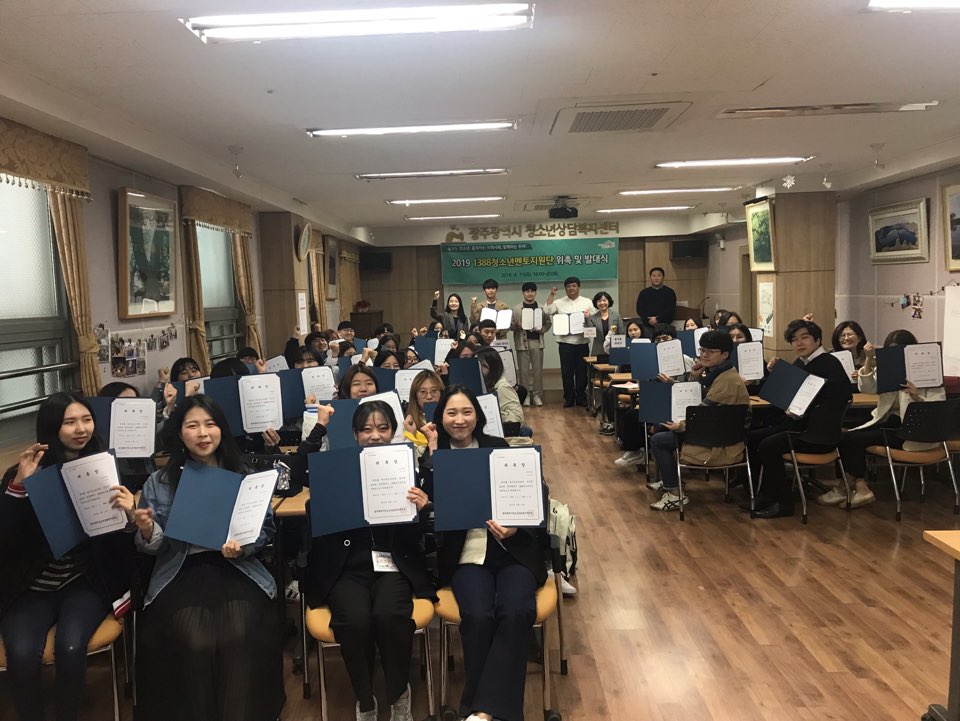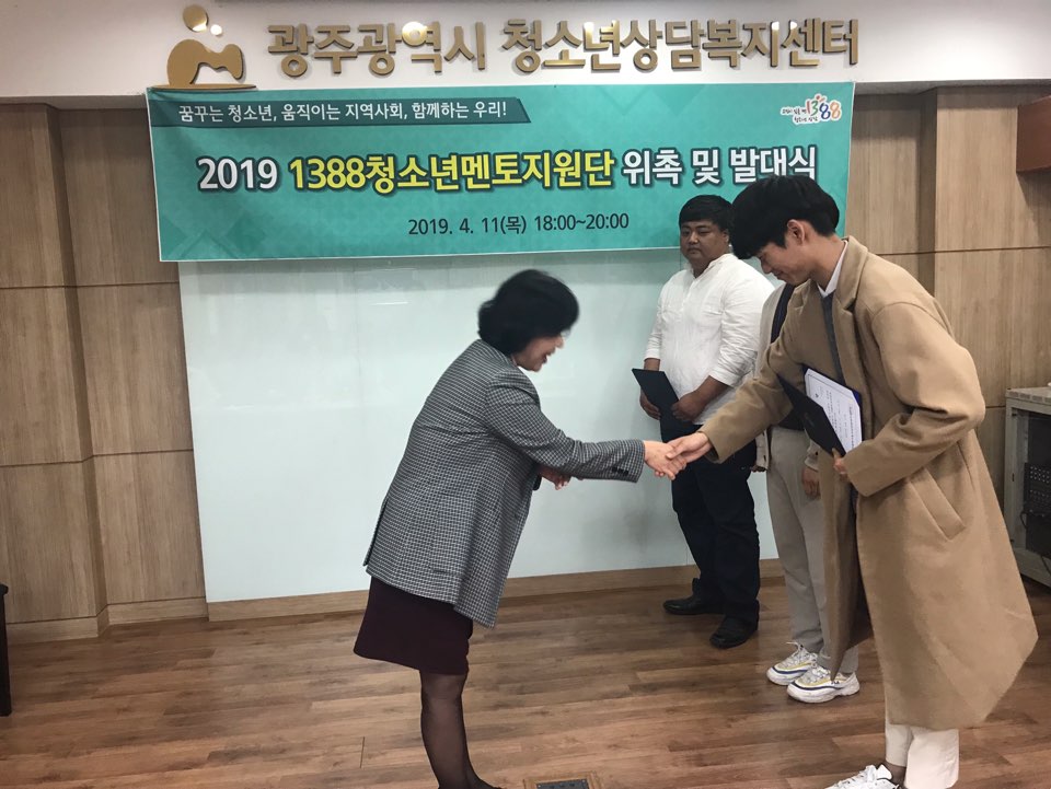 4¿ù 11ÀÏ ¸ñ¿äÀÏ ±¤ÁÖ±¤¿ª½Ãû¼Ò³â»ó´ãº¹Áö¼¾ÅÍ¿¡¼´Â À§±âû¼Ò³âÀ» À§ÇÑ 1388û¼Ò³â¸àÅäÁö¿ø´Ü À§ÃË½Ä ¹× ¹ß´ë½ÄÀ» ÁøÇàÇß½À´Ï´Ù.
