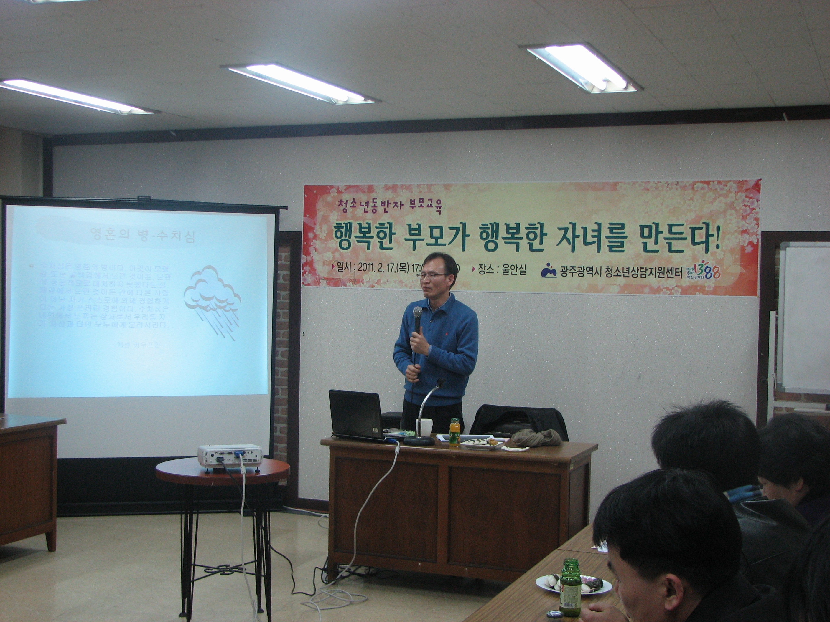 û¼Ò³âµ¿¹ÝÀÚ ºÎ¸ð±³À° ÀÏ ½Ã : 2011³â 2¿ù 17ÀÏ (¸ñ) 17:00~19:00 Àå ¼Ò : YMCA ¿ï¾È½Ç ÁÖ Á¦ : "ÇູÇÑ ºÎ¸ð°¡ ÇູÇÑ Àڳฦ ¸¸µç´Ù" ´ë »ó : µ¿¹ÝÀÚ ´ë»ó û¼Ò³â Çкθð ¹× »ó´ãÁö¿ø¼¾ÅÍ ÀÌ¿ë Çкθð ´ã´çÀÚ : À¯°æÈñ »ó´ã¿ø