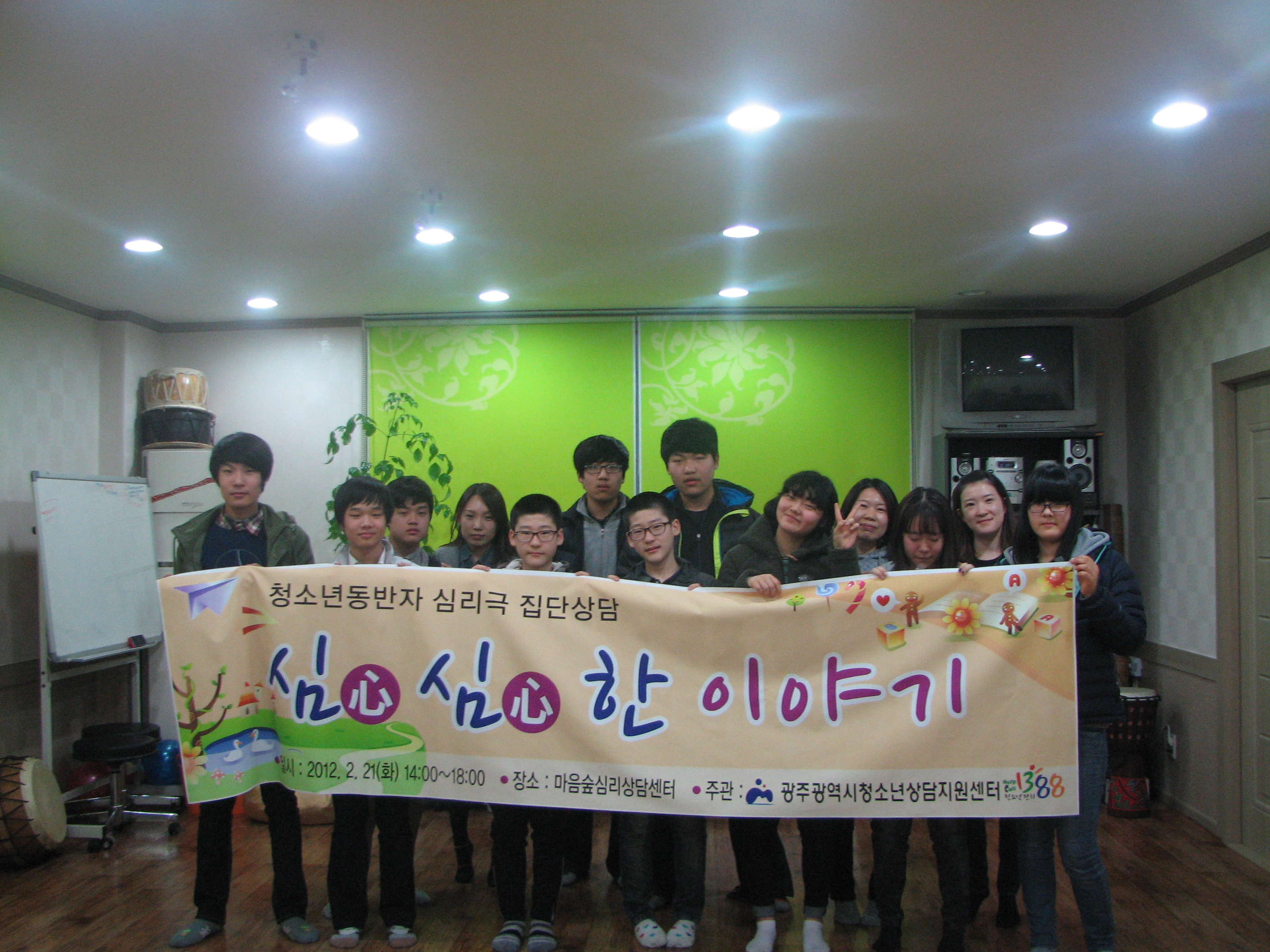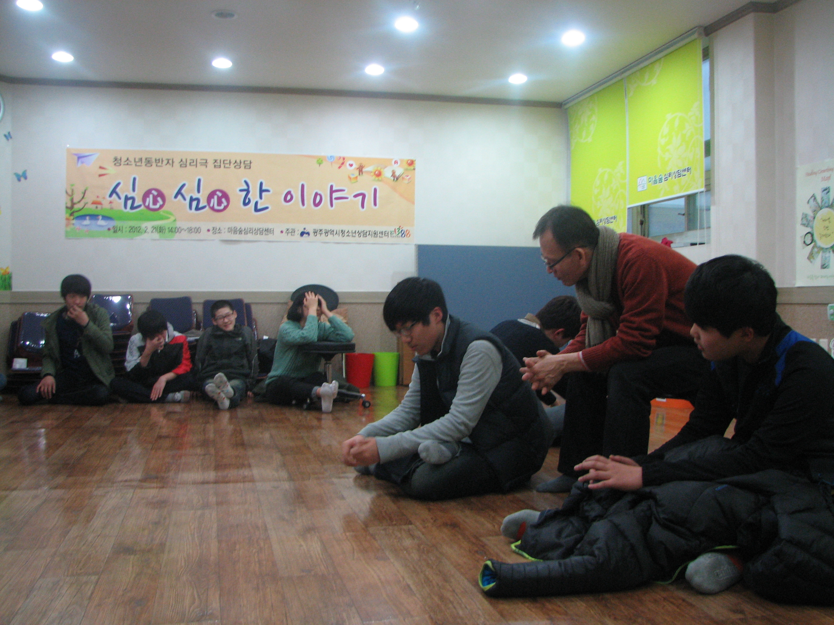 ¡Û ÇÁ·Î±×·¥¸í : û¼Ò³âµ¿¹ÝÀÚ ½É¸®±Ø Áý´Ü»ó´ã ¡Û ÀÏ ½Ã : 2012³â 2¿ù 21ÀÏ(È) 14:00-18:00 ¡Û Àå ¼Ò : ¸¶À½½£½É¸®»ó´ã¼¾ÅÍ ¡Û ´ë »ó : û¼Ò³âµ¿¹ÝÀÚ ÇÁ·Î±×·¥ Âü¿©´ë»óÀÚ 15¸í ¡Û ³» ¿ë : ÀÚ±âÇ¥Çö°ú ´ëÀΰü°è ¡Û ´ã ´ç : ȲȿÁø (062-1388)